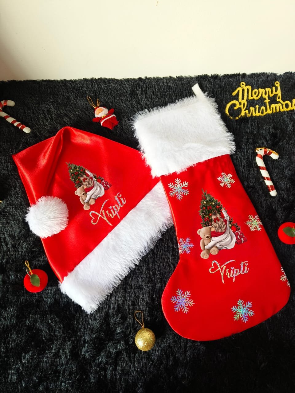 Celebrate the festive season with our premium 3D Christmas Stocking and 3D Satin Santa Fur Cap.